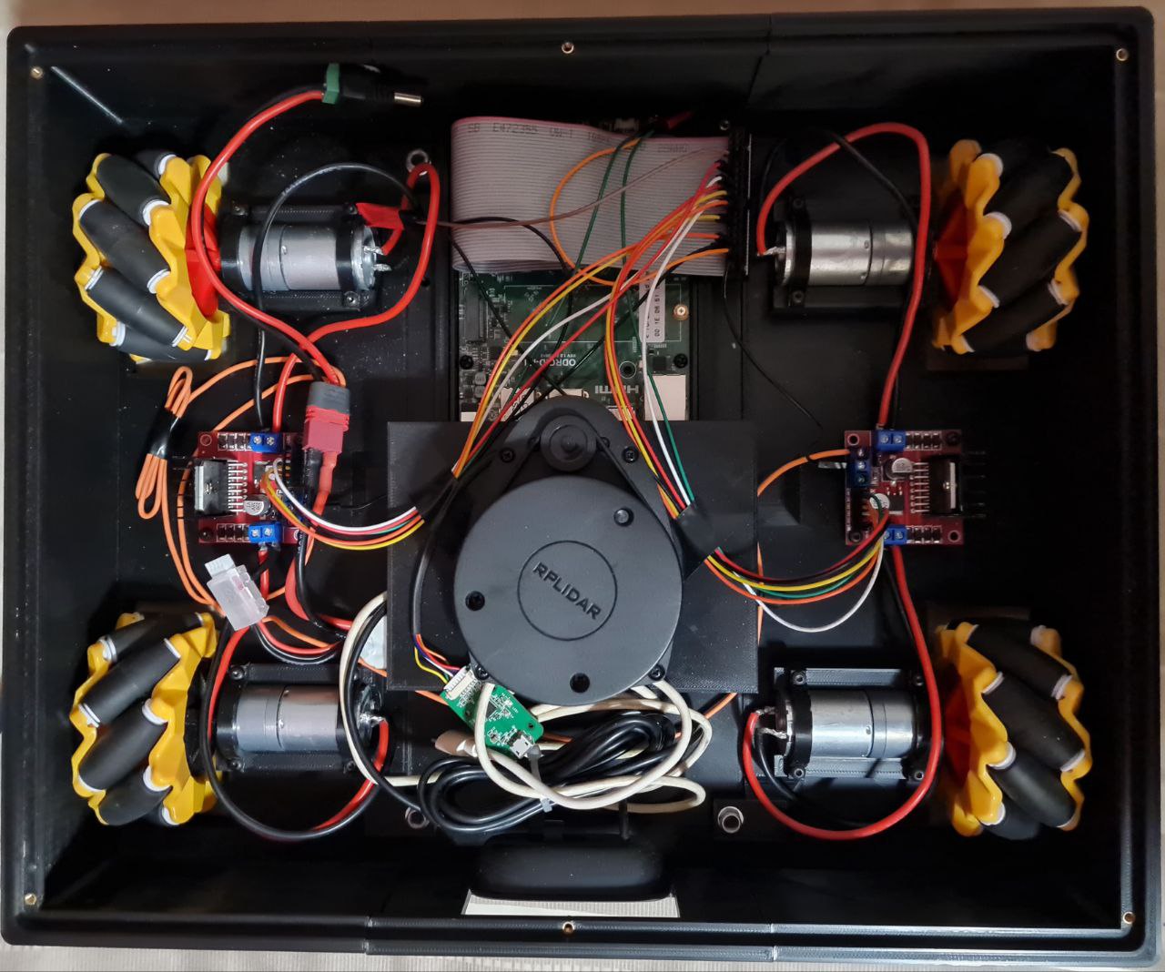 The objective of this project was to develop and implement a robot that is able to map out its environment, while maintaining its own position therein. The robot will be able to follow waypoints and can move in any direction.