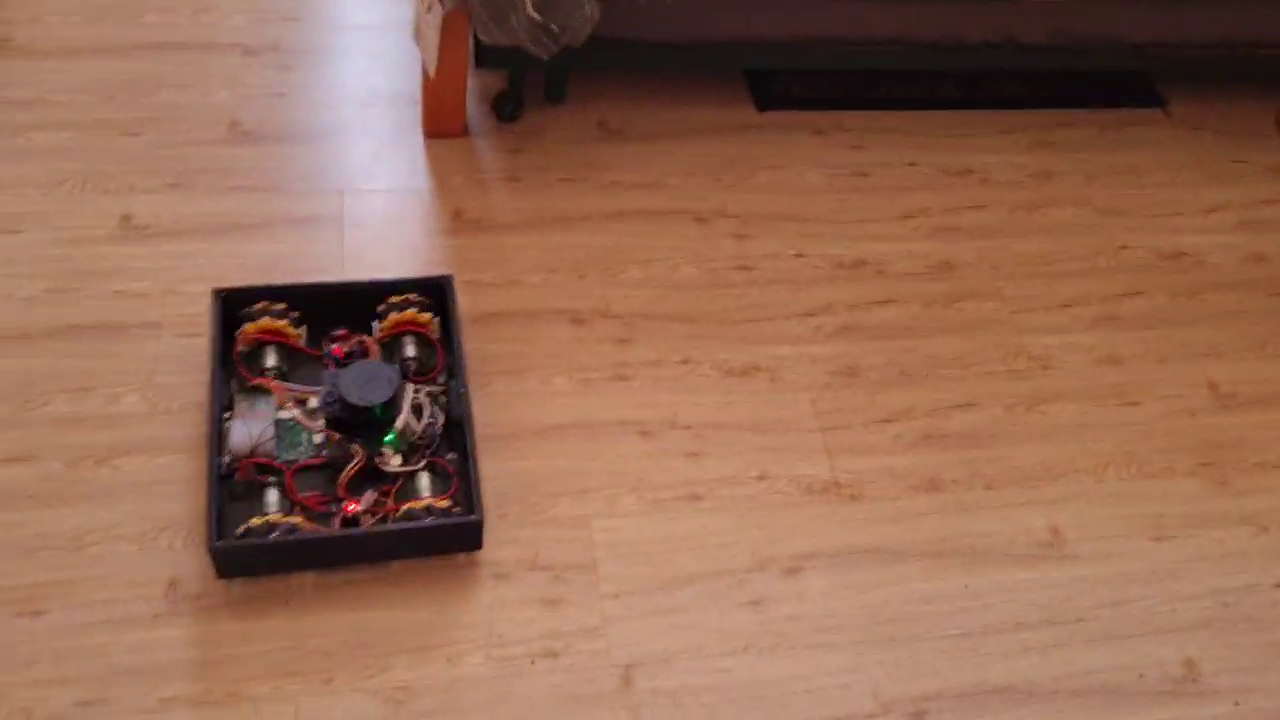 The holonomic movement of the device requires a choice between differential drive and omnidirectional wheels. For true holonomic movement omnidirectional wheels are used as they allow the device to sideways like a crab. These wheels have some drawback. A much increased amount of wheel slip is experienced on especially hard floors, this makes the use of encoders for the motors of little purpose.